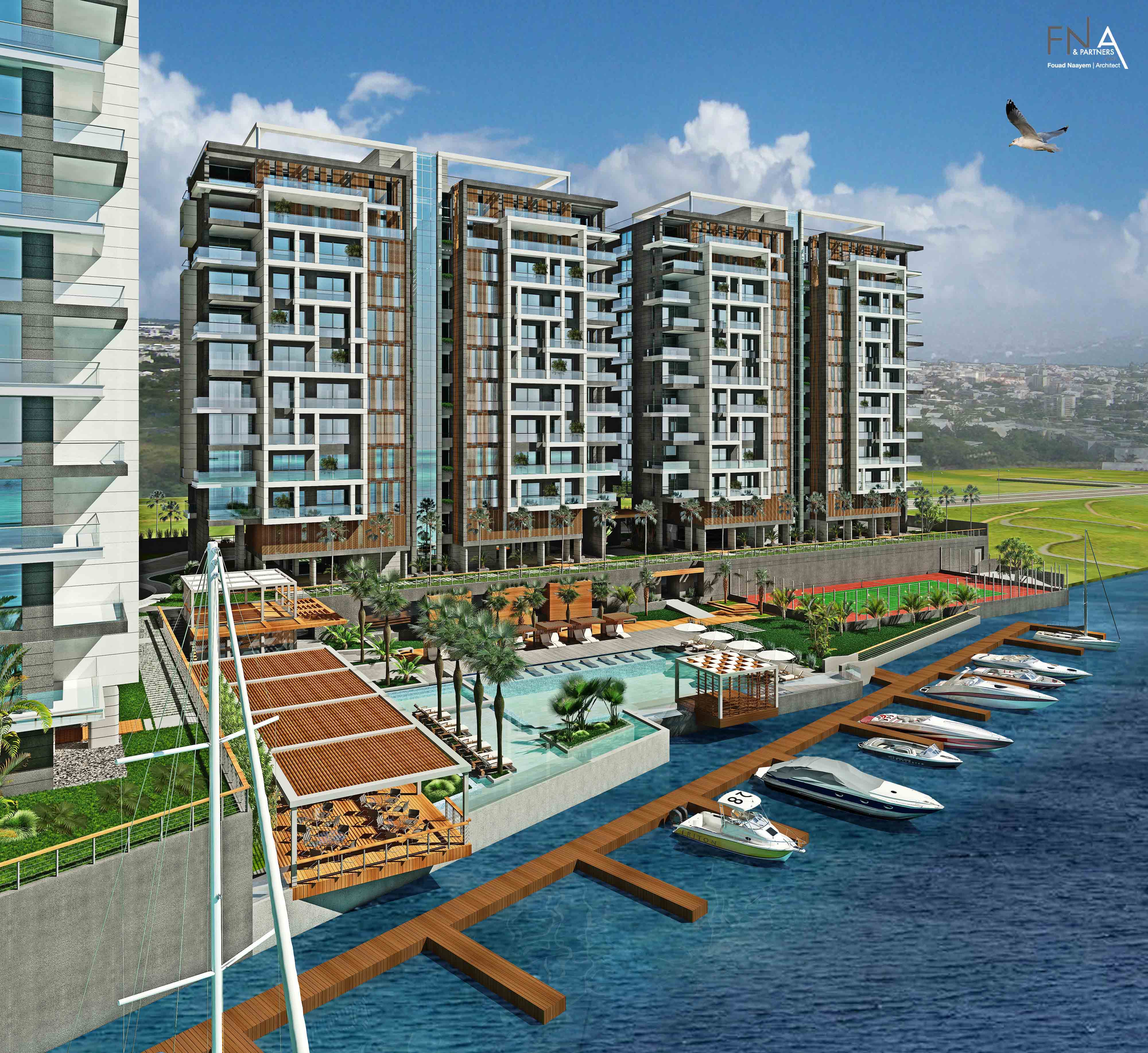 Description | 3 x 12 stories Residential Blocks of Apartments from 150, 300, 350 and 650sqm, Wellness Center, Kids & Sports Areas, Tennis Court, Swimming Pool & Restaurant.